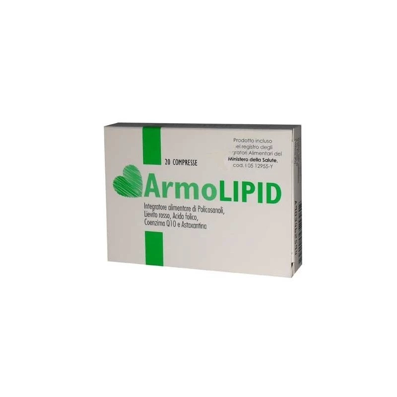 Armolipid Integratore alimentare a base di policosanoli, riso rosso fermentato (Monascus purpureus), acido folico, coenzima Q10 e astaxantina.