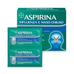 Indicazioni terapeuticheTrattamento sintomatico della congestione nasale e dei seni nasali (rinosinusite) con stati dolorosi e febbrili associati a sintomi influenzali e/o da raffreddamento. Aspirina influenza e naso chiuso è indicata per adulti e adolescenti dai 16 anni.Controindicazioni- Ipersensibilità alla pseudoefedrina, all’acido acetilsalicilico o ad altri salicilati, o ad uno qualsiasi degli eccipienti elencati al paragrafo 6.1; – Anamnesi di asma indotta dalla somministrazione di salicilati o sostanze con un’azione simile, in particolare farmaci antinfiammatori non steroidei; – Ulcere gastrointestinali acute; – Diatesi emorragica; – Gravidanza; – Allattamento; – Insufficienza epatica grave; – Insufficienza renale grave; – Insufficienza cardiaca grave; – In combinazione con metotrexato usato in dosi di 15 mg/settimana o superiori; – Ipertensione grave; – Coronaropatia grave; – Trattamento con medicinali inibitori delle monoamino ossidasi nelle due settimane precedenti.Principi attiviOgni bustina contiene 500 mg di acido acetilsalicilico e 30 mg di pseudoefedrina cloridrato Eccipienti con effetti noti: Ogni bustina contiene 2g di saccarosio. Ogni bustina contiene 3,78 mg di alcol benzilico. Per l’elenco completo degli eccipienti, vedere paragrafo 6.1.EccipientiAcido citrico Saccarosio Ipromellosa Saccarina Aroma arancia contenente alcol benzilico, acido acetico, alfa tocoferolo, amido modificato E1450 e maltodestrinaPosologiaPosologia Il contenuto di 1-2 bustine per adulti e adolescenti dai 16 anni. Se necessario, è possibile ripetere la singola dose ad intervalli di 4-8 ore. Non superare la dose giornaliera massima di 6 bustine. Se prevale uno dei sintomi, è più appropriato il trattamento con un solo principio attivo. Aspirina influenza e naso chiuso non va assunto per più di 3 giorni senza aver prima consultato un medico. Popolazione pediatrica Aspirina influenza e naso chiuso non deve essere assunto da bambini e adolescenti di età inferiore ai 16 anni, senza consultare il medico. Data la limitata esperienza d’uso di Aspirina influenza e naso chiuso in bambini e adolescenti, non è possibile indicare una dose raccomandata specifica. Modo di somministrazione Aspirina influenza e naso chiuso deve essere disciolto in un bicchiere d’acqua prima dell’assunzione. La sospensione che si forma ha il sapore di arancia.Gravidanza e allattamentoGravidanza Non essendo disponibili dati sulla combinazione delle due sostanze, l’uso di Aspirina influenza e naso chiuso è controindicato in gravidanza. L’inibizione della sintesi delle prostaglandine può avere effetti avversi sulla gravidanza e/o lo sviluppo embrio-fetale. I dati tratti dagli studi epidemiologici suggeriscono un aumento del rischio di aborto spontaneo e di malformazioni cardiache e gastroschisi in seguito all’uso di inibitori della sintesi delle prostaglandine nelle prime fasi della gravidanza. Il rischio assoluto di malformazione cardiovascolare ha avuto un aumento da meno dell’1% all’1,5% circa. Si ritiene che questo rischio aumenti con la dose e la durata della terapia. Negli animali, è stato dimostrato che la somministrazione di un inibitore della sintesi delle prostaglandine provoca un aumento della perdita dell’embrione pre e post-impianto e della letalità embrio-fetale. Inoltre, un’aumentata incidenza di varie malformazioni, incluse quelle cardiovascolari, è stata segnalata in animali ai quali era stato somministrato un inibitore della sintesi delle prostaglandine durante il periodo organogenetico. Durante il primo e il secondo trimestre di gravidanza, l’acido acetilsalicilico non va somministrato, se non assolutamente necessario. Qualora l’acido acetilsalicilico sia usato da una donna che ha pianificato una gravidanza, o durante il primo e il secondo trimestre di gravidanza, la dose deve essere la piu’ bassa possibile e la durata del trattamento la piu’ breve possibile. Durante il terzo trimestre di gravidanza, tutti gli inibitori della sintesi delle prostaglandine possono esporre il feto a: – tossicità cardiopolmonare (con chiusura prematura del dotto arterioso e ipertensione polmonare); – disfunzione renale, che può evolversi in insufficienza renale con oligoidroamniosi; La madre e il neonato, al termine della gravidanza, a: – possibile protrazione del tempo di emorragia, effetto antiaggregante che può manifestarsi anche a dosi molto basse; – inibizione delle contrazioni uterine che determina il ritardo o il protrarsi del travaglio. Pertanto, l’acido acetilsalicilico è controindicato nel terzo trimestre di gravidanza. Gli scarsi dati a disposizione sull’uso di pseudoefedrina in gravidanza non mostrano un aumento del rischio di malformazioni. Tuttavia, l’uso di pseudoefedrina in gravidanza è da sconsigliarsi. Negli studi sugli animali entrambi i principi attivi hanno mostrato tossicità riproduttiva (vedere paragrafo 5.3). Allattamento Sia i salicilati che la pseudoefedrina passano nel latte materno in piccole quantità. Non essendovi dati disponibili sulla combinazione delle due sostanze, l’uso di Aspirina influenza e naso chiuso è controindicato durante l’allattamento. Fertilità Vi sono alcune evidenze che i farmaci che inibiscono la sintesi delle prostaglandine possono provocare la compromissione della fertilità femminile attraverso un effetto sull’ovulazione. Ciò è reversibile alla sospensione del trattamento.ConservazioneNon conservare a temperatura superiore a 30 °C.Avvertenze- Trattamento concomitante con anticoagulanti; – Anamnesi di ulcere gastrointestinali fra cui malattia ulcerosa cronica o recidivante o anamnesi di emorragie gastrointestinali; – Pazienti con funzionalità renale compromessa o funzione cardiovascolare compromessa (per es. patologia vascolare renale, insufficienza cardiaca congestizia, deplezione volemica, intervento chirurgico maggiore, sepsi o eventi emorragici maggiori), poiché l’acido ac