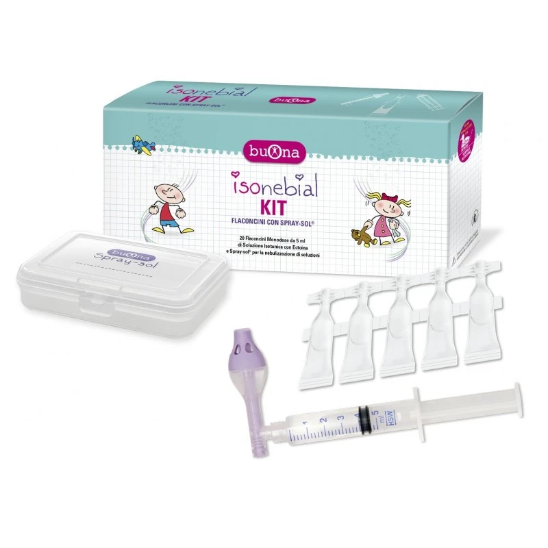 ISONEBIAL KIT PER PULIZIA FOSSE NASALI CON ISONEBIAL 20 FLACONCINI MONODOSE DA 5 ML E BUONA SPRAY-SOL E SIRINGA LUER LOCK DA 5 M