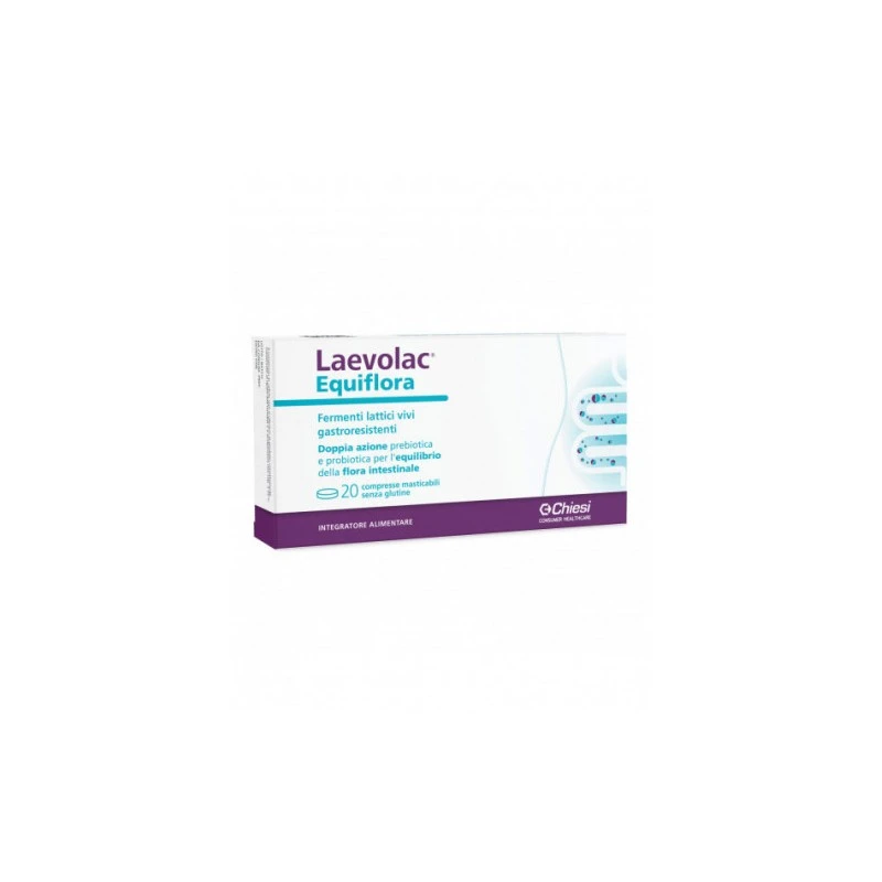 Laevolac Equiflora 20 Compresse è un integratore alimentare studiato per riequilibrare la flora intestinale e favorire il corretto funzionamento dell’apparato digerente. Grazie alla sua formulazione a base di fermenti lattici vivi, prebiotici e vitamine, aiuta a contrastare disturbi come gonfiore addominale, irregolarità intestinale e alterazioni della flora batterica dovute a stress, dieta squilibrata o terapie antibiotiche.