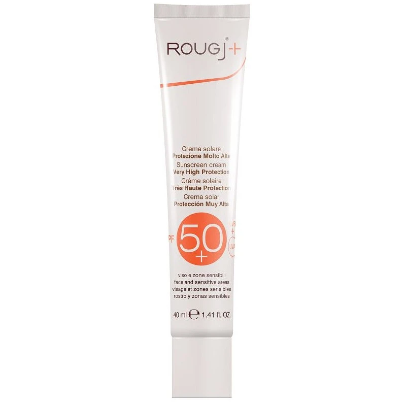 Rougj Crema Solare Viso SPF50+ a protezione molto alta, per le carnagione chiare, delicate e le zone sensibili. Contiene un mix di filtri equilibrato per una protezione ad ampio spettro UVA e UVB.